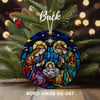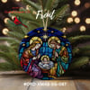 3 Inch Round Ornament - Stained Glass Nativity Design, Made to order ships within 5 days of order placement. Free Shipping Included (Ships To USA Only). *Coated MDF or Ceramic Material "Simulated Stained Glass"